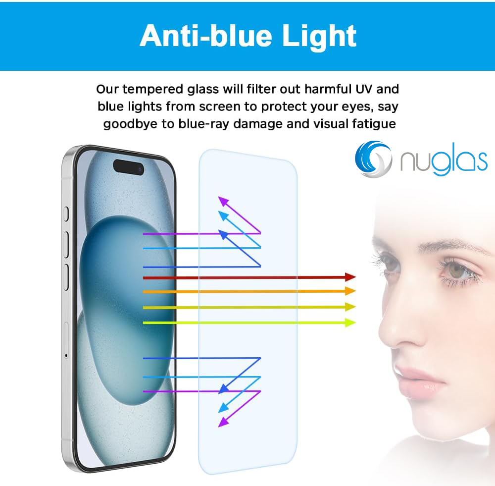Shield your eyes and your device with the Nuglas Anti-Blue Screen Protector (2 pack ) , designed specifically for the iPhone 17 Air  . This premium tempered glass protector not only guards your screen from scratches, smudges, and impacts but also features advanced anti-blue light technology. By filtering out harmful blue light emissions, it reduces eye strain and fatigue during extended screen time, making it ideal for gaming, reading, or working on your phone.