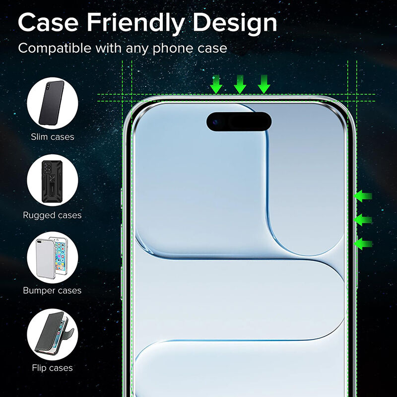 The applicator included in the package ensures effortless, bubble-free installation. Designed to perfectly fit the iPhone 17 Air, this screen protector offers edge-to-edge protection without interfering with the phone's touch sensitivity or Face ID functionality.