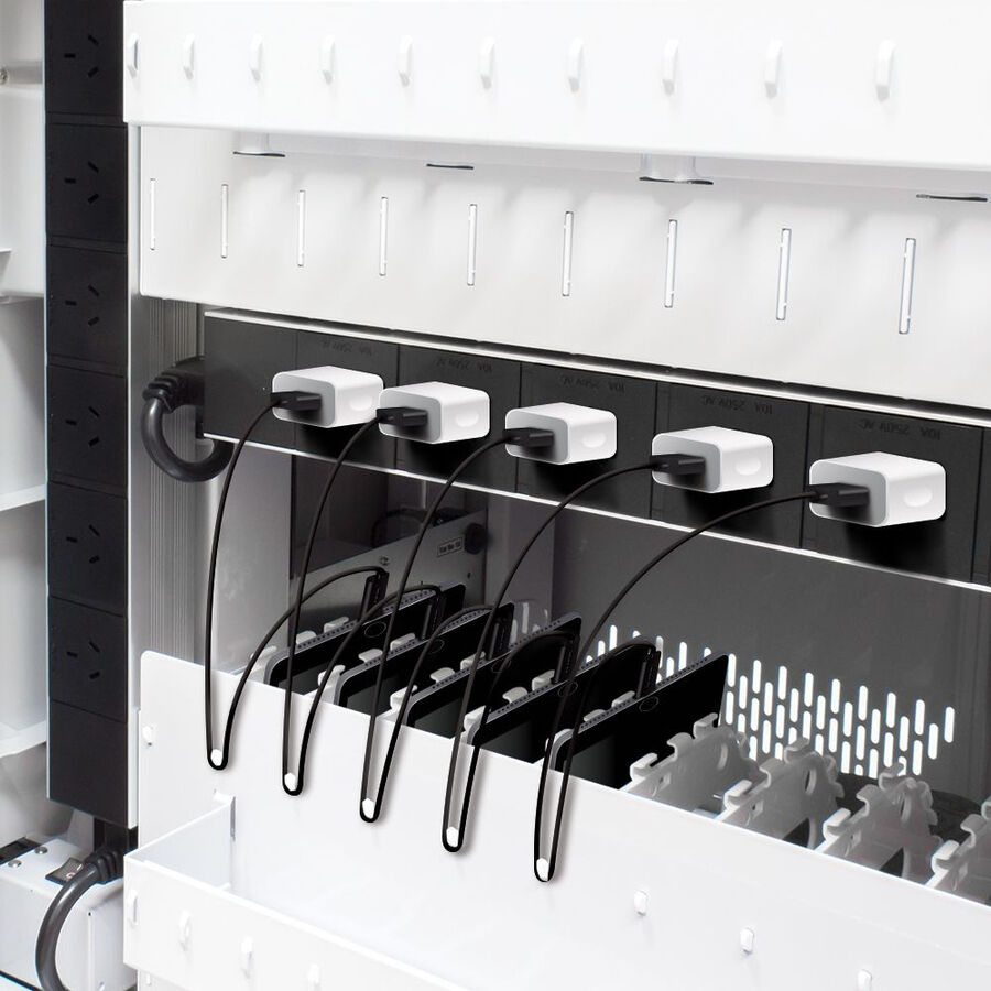 Inbuilt smart cable management and the baskets for holding the power adapters keeps everything in place and tidy.
