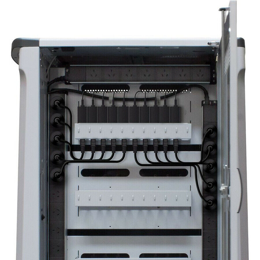 Inbuilt smart cable management and the baskets for holding the power adapters keeps everything in place and tidy.