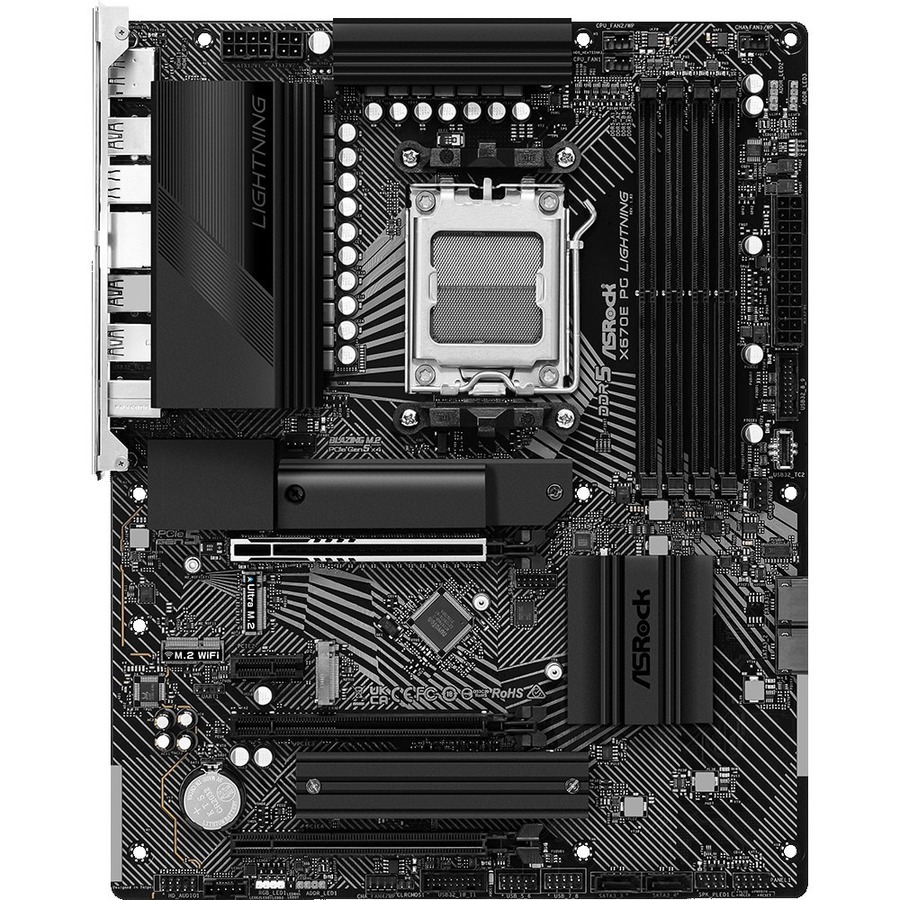ASRock X670E PG Lightning Gaming Desktop Motherboard - AMD X670 Chipset - Socket AM5 - ATX - Ryzen 7 Processor Supported - 128 GB DDR5 SDRAM Maximum RAM - DIMM, UDIMM - 4 x Memory Slots - Gigabit Ethernet - HDMI - DisplayPort - 4 x SATA Interfaces