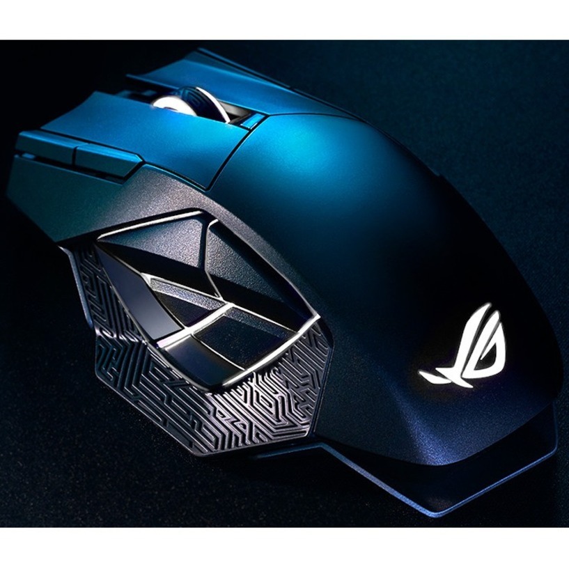 Wireless gaming mouse with dual-mode connectivity (wired / 2.4 GHz) with magnetic charging stand, 12 programmable buttons, specially tuned ROG 19,000 dpi sensor, Exclusive Push-Fit Switch Sockets, ROG Micro Switches, ROG Paracord and Aura Sync RGB lighting