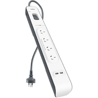 - Belkin BSV401 4-Outlet 2-Meter Surge Protection Strip with two 2.4 amp USB charging ports