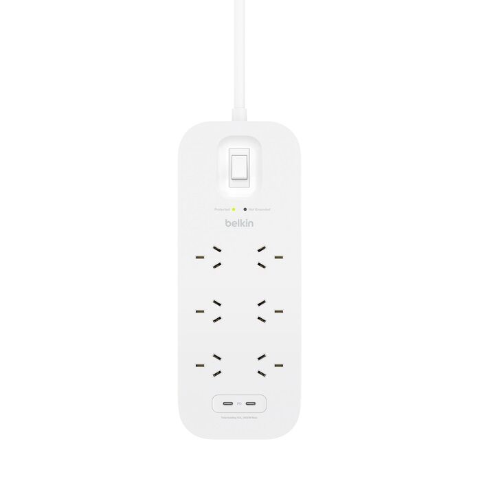 Belkin 6-Outlet Surge Protection Strip with Dual USB-C charging ports - (SRB006AU2M),Complete Three-line AC protection, CEW $50,000,2YR