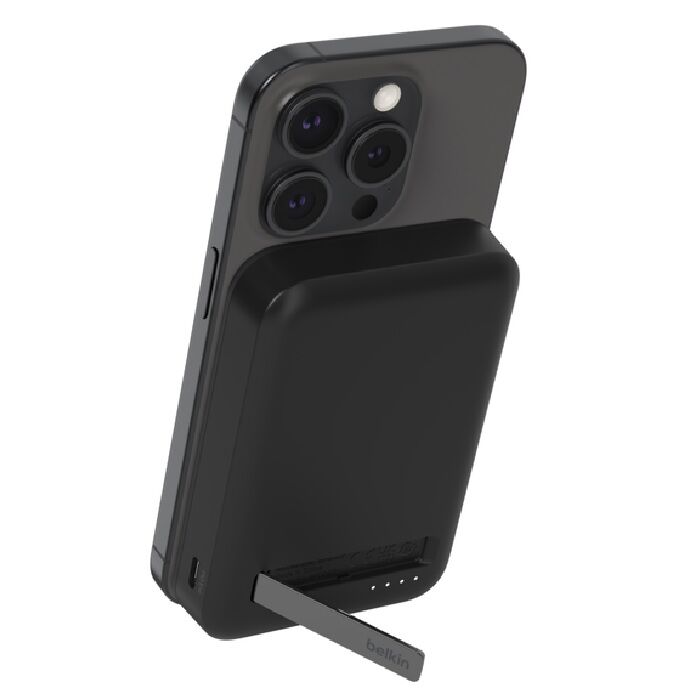 Wirelessly charge iPhone and other Qi2-enabled smartphones quickly and safely with our BoostCharge Pro Magnetic Power Bank with Qi2 15W 8K§. Your Qi2 and MagSafe compatible devices will have easy and seamless on-the-go charging up to 15W. Watch video, stream or create content at the perfect viewing angle with the integrated kickstand — even while your device is charging.