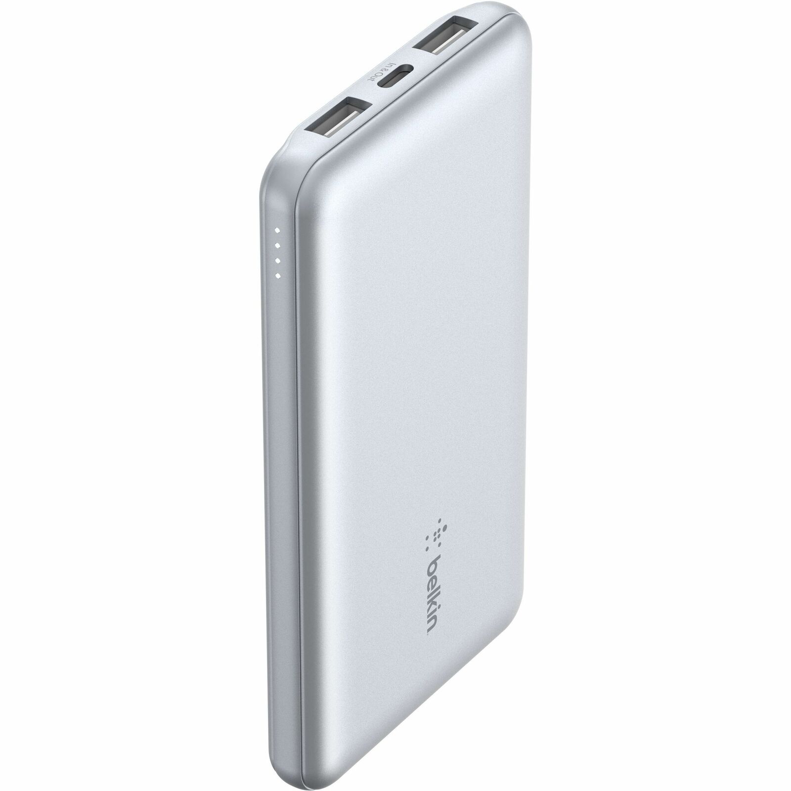 Belkin BoostCharge Power Bank - Pearl Blue - For Smartphone, iPad, AirPod, iPhone - 1 x Type-C 15W, 2 x Type-A 15W - 10000 mAh - 3 x USB - Pearl Blue
