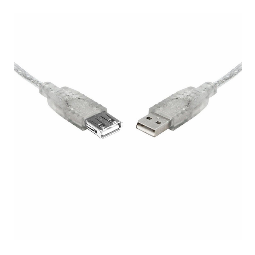 8Ware USB 2.0 Extension Cable 2m A to A Male to Female Transparent Metal Sheath Cable