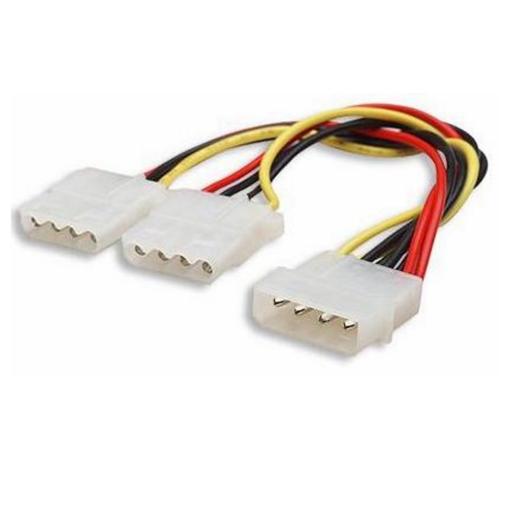 The ASTROTEK drive power splitter cable features a male 4-pin Molex connector one end, which splits to female 4-pin Molex connectors. It is commonly used in older PCs to provide power 5.25" drives. This splitter cable allows you to connect two drives to a single power-supply output.