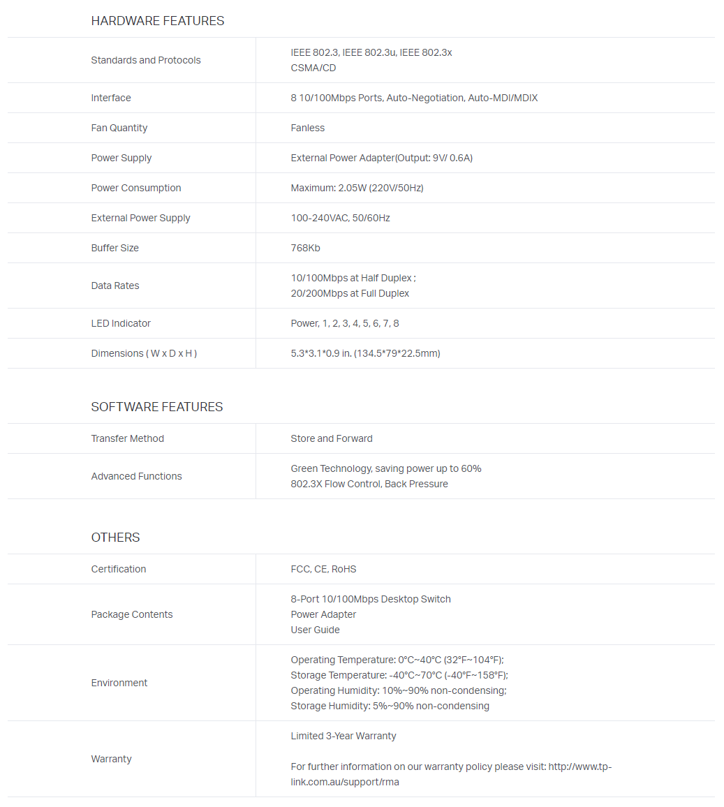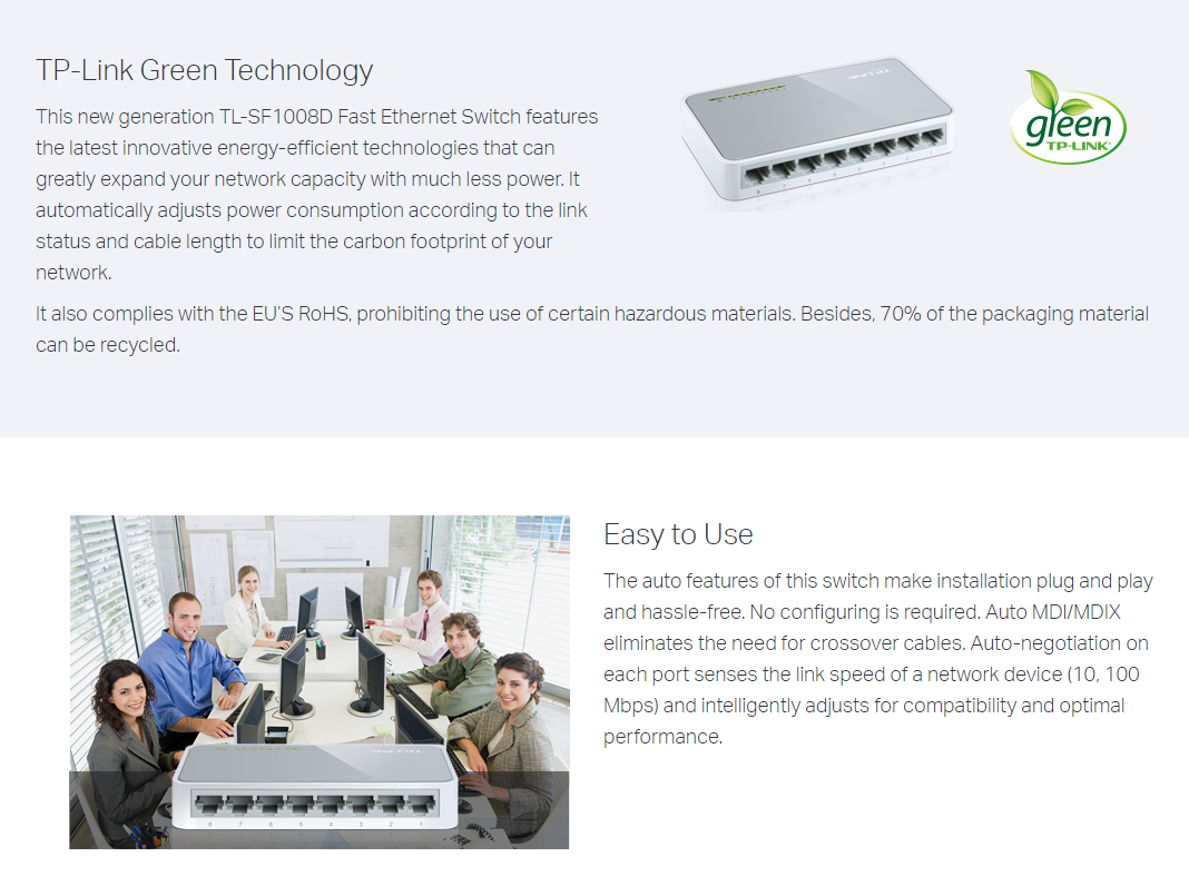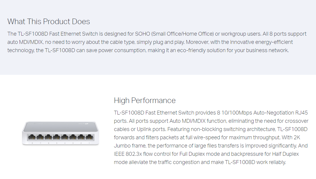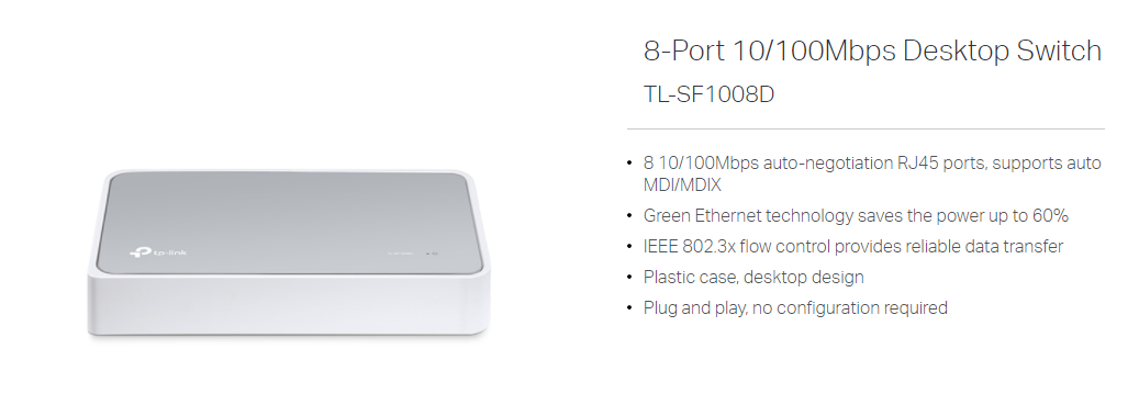 TP-Link Desktop Switch 8-Port Hub Ethernet PC Switch Network Switch TL-SF1008D