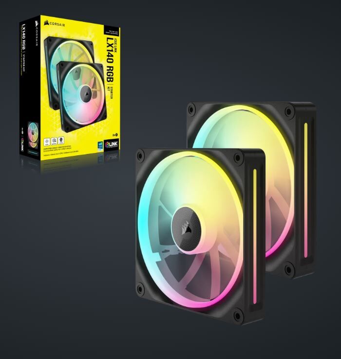 Corsair iCUE LINK LX140 RGB 140mm PWM Fans Starter Kit BLACK Dual Pack FAN SIZE 140mm x 25mm LED Color RGB FIVE-YEAR WARRANTY