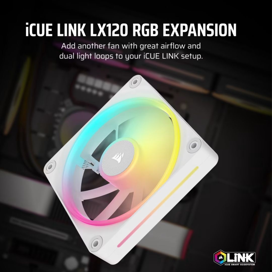 Corsair LX120 White, Single/ iCUE LINK LX120 RGB 120mm PWM Single Fan Expansion - White
