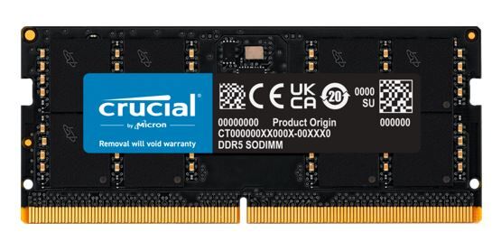 Crucial 64GB (1x64GB) DDR5 SODIMM 5600MHz CL46 Desktop PC Memory General tech specs Technology DDR5 Module Type SODIMM Density 64GB Kit Quantity 1 Voltage 1.1V/(5V ext) Dimm Type Unbuffered Die Density 32Gb Default and performance recovery profiles default(jedec) 46-45-45 Speed & timing Speed DDR5-5600 CASLatency 46 Extended Timings 46-45-45 Warranty Description 5 Yrs Limited