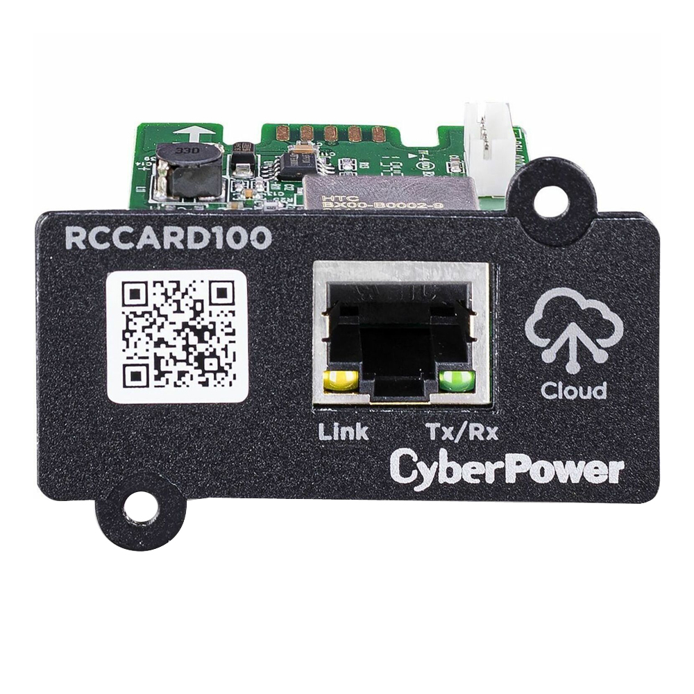 A UPS monitoring card, the CyberPower RCCARD100 monitors the operation of select CyberPower UPS that are setup with PowerPanel® Cloud system. A secure web portal or mobile application is used to remotely monitor a UPS and provide notifications on power events.