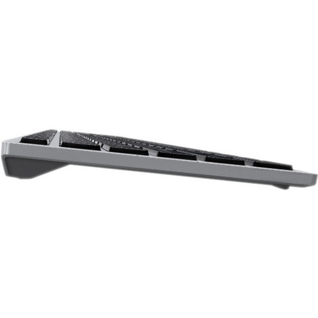The thoughtfully designed quiet keyboard is slim and stylish with a premium feel and titan gray finish. The adjustable tilt legs on your keyboard give you the flexibility to work in your ideal typing position.