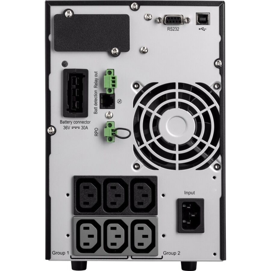 • Online double conversion topology allowing for continuous monitoring of power conditions.