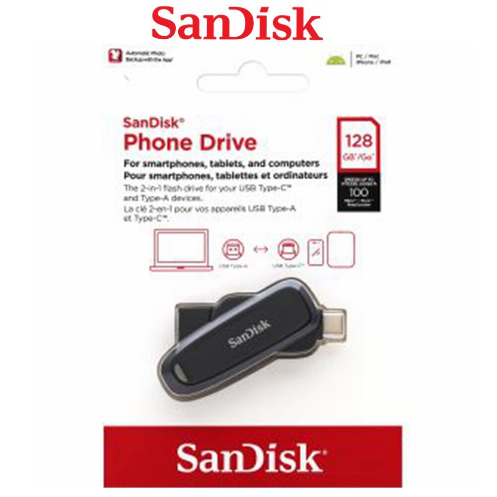 Looking for storage that works across your USB Type-C™ and Type-A devices? The flexible and convenient SanDisk Phone Drive lets you seamlessly move files between your USB Type-C™ smartphone, tablet, and Mac and USB Type-A computer. Transfer files quickly with read speeds up to 100MB/s Now you can take even more photos, and access and share them across your devices without missing a beat.