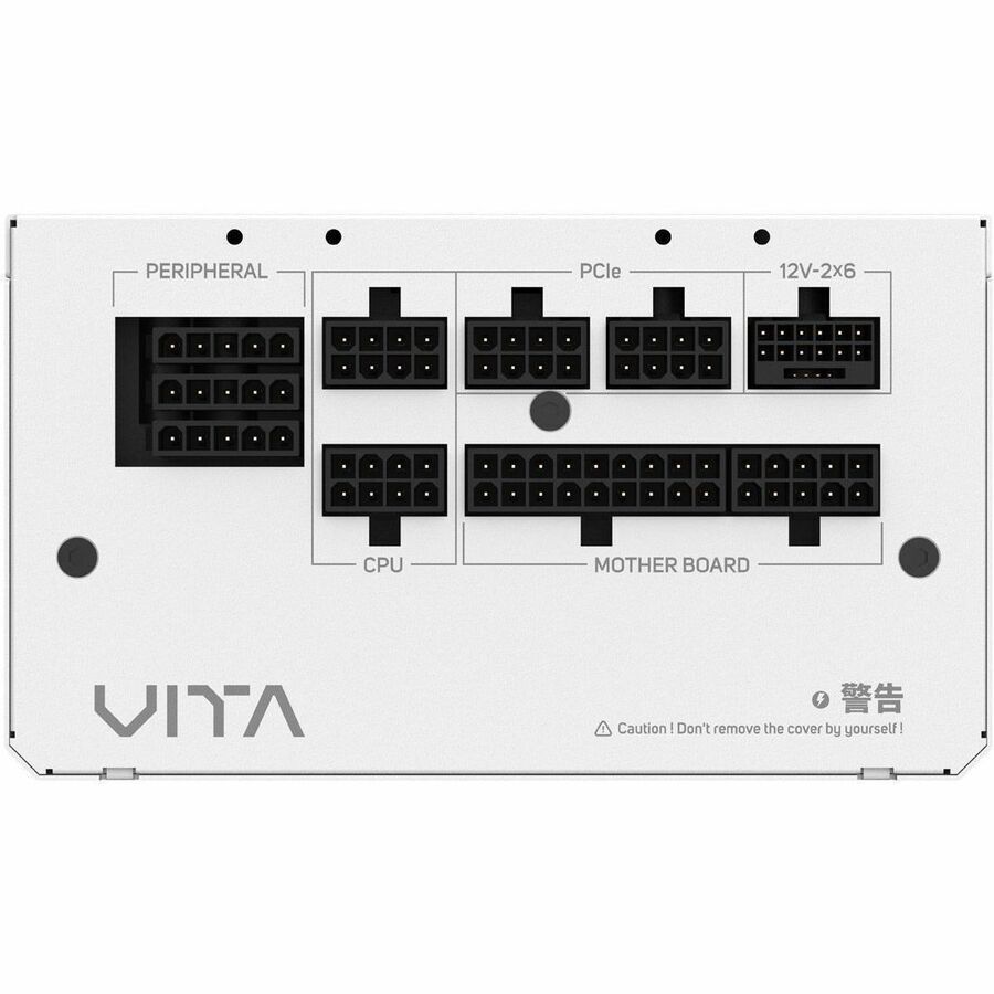 FSP 1000W VITA GM ATX3.1 GOLD MODULAR WHITE PSU supports PCIe 12V-2x6 features Platinum certification LLC Resonant-converter Topology Japanese capacitors and safety protections