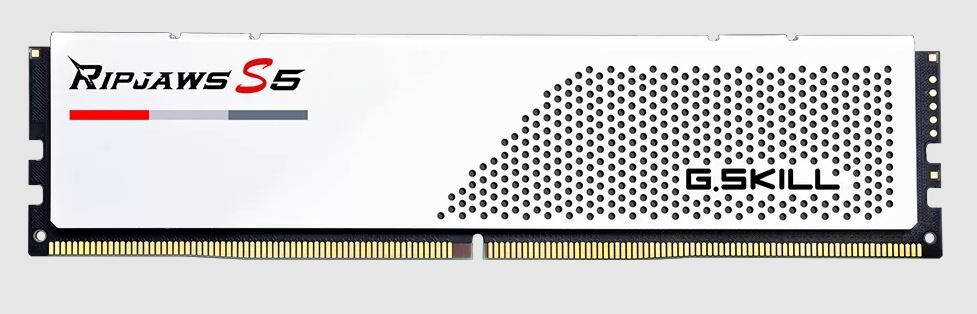 Ripjaws S5 is a performance DDR5 DRAM memory series made with hand-screened memory ICs that passed G.SKILL rigorous validation tests. Each Ripjaws S5 memory kit strikes an ideal balance between performance, compatibility, and stability and is available in matte black or matte white aluminum heatspreaders.