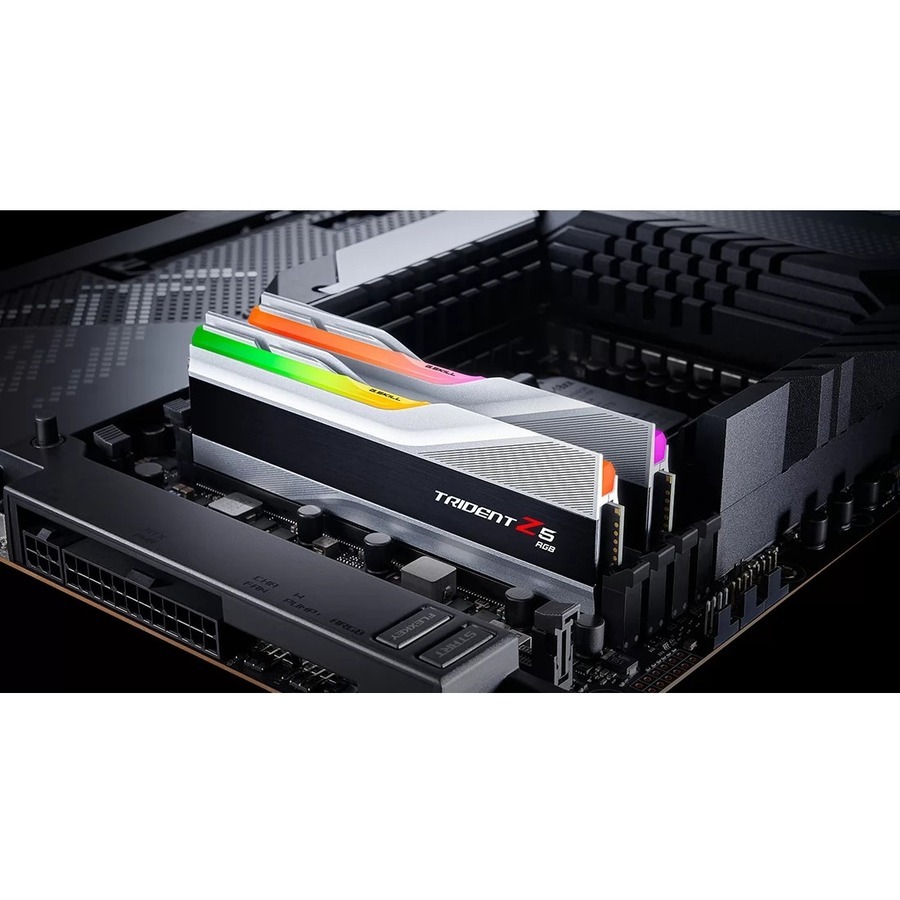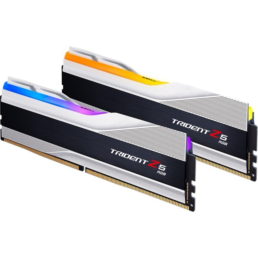 Trident Z5 RGB series DDR5 memory is designed for ultra-high performance on DDR5 platforms. Featuring a sleek and streamlined aluminum heatspreader design, available in metallic silver or matte black, the Trident Z5 RGB series DDR5 DRAM memory is the ideal choice to build a high-performance system.