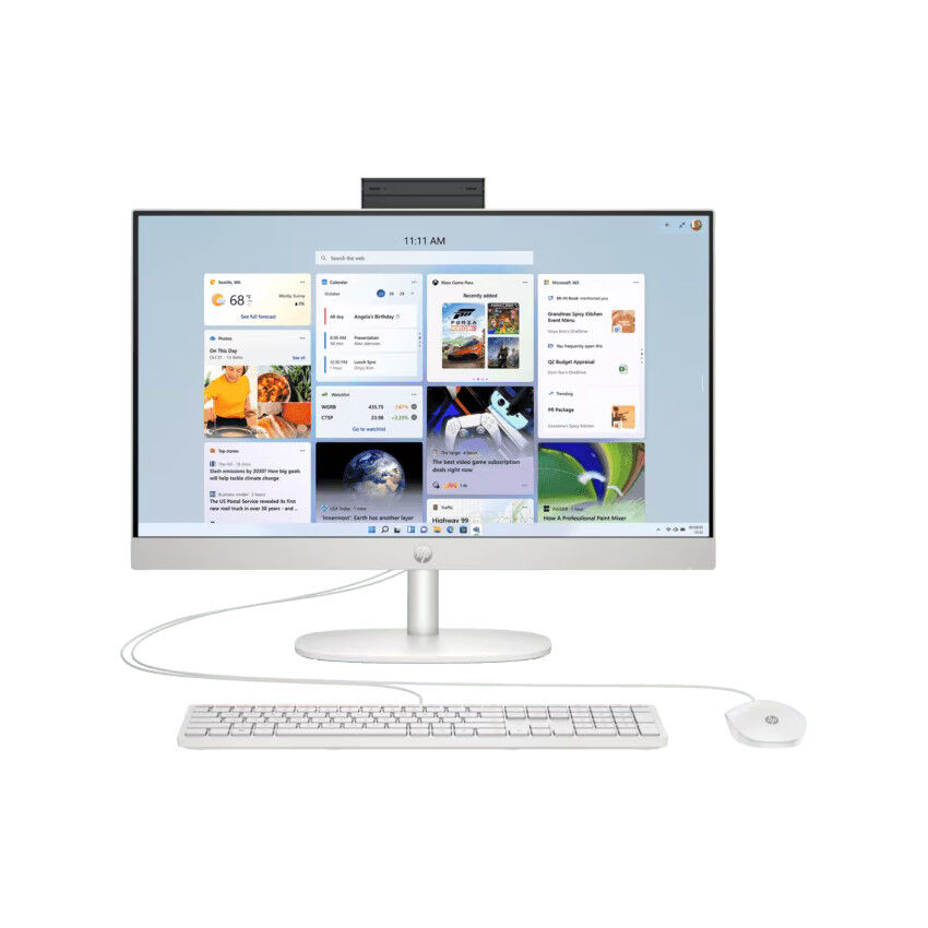 • HP 125 USB White Wired Keyboard and HP 125 USB White Wired Mouse, 720p HD tilt privacy camera , 1 HDMI-out 1.4