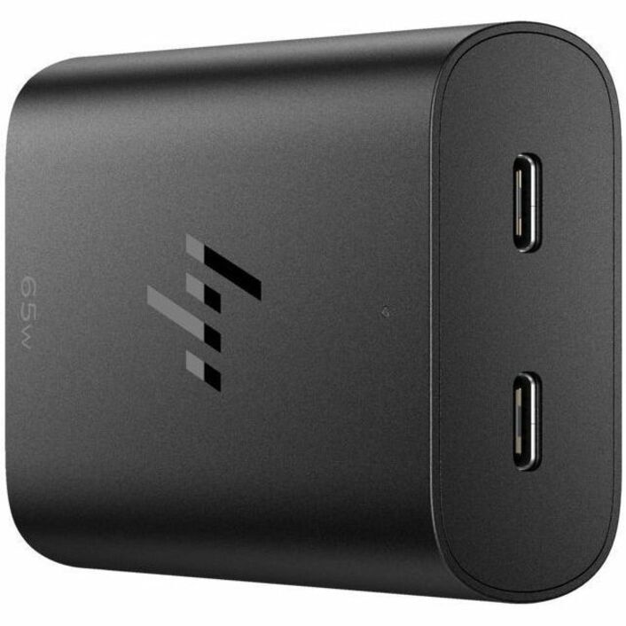 HP USB-C 65W GaN Laptop Charger, compact and efficient power adapter for fast charging on the go.