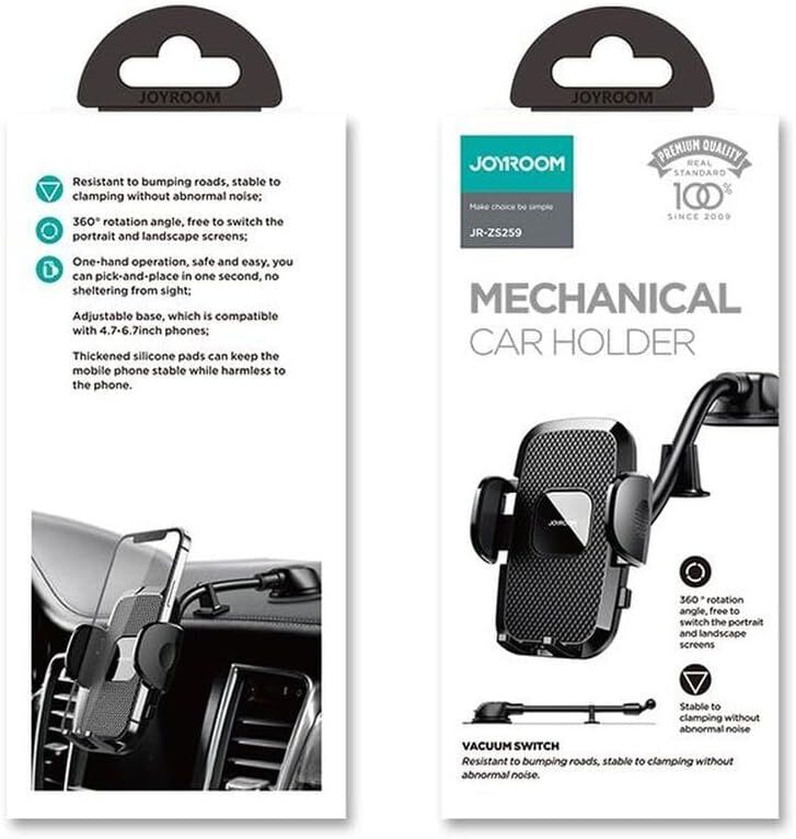Joyroom Long Arm Mechanical Car Phone Holder Strong Suction Mount for Dashboard & Windshield