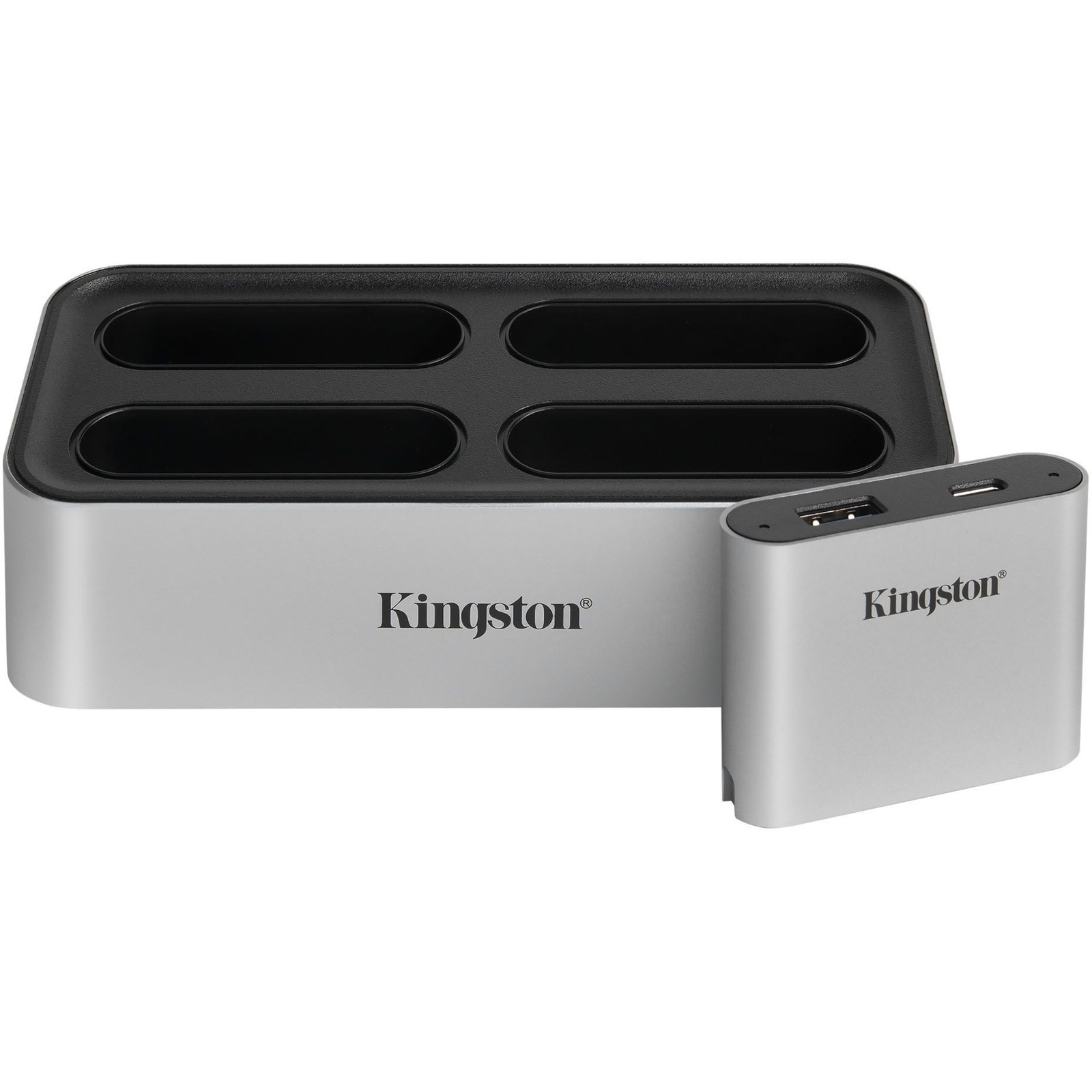 Kingston's Workflow Station and Readers provide a flexible system to transfer video, photos, and audio from multiple sources at once1. Expedite your post-production workflow and create a file offload setup that fits your needs. The Workflow Station Dock is customizable so you can use only the USB miniHub, SD readers, or microSD readers that your shoot requires. Whether you're on a 4K/8K multi-cam shoot with portable audio recorders for each host, or filming B-Roll with drones and GoPros, you can connect up to four readers to the dock simultaneously and transfer footage quickly. The Workflow Station and Readers support USB 3.2 speeds which get you to your post-production process faster than ever. For added flexibility the card readers can be used on-the-go. When you need to shoot on location simply drop the hub or readers you need into your bag and connect them to your laptop using the included USB-C® cable.