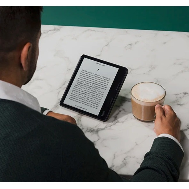 Kobo Sage was designed from the ground up with a quad-core CPU and faster, dual band WiFi to deliver top performance in one elegant package. Sleek and lightweight, Kobo Sage feels perfect in your hands in landscape or portrait mode. Page-turn buttons keep the story moving with one hand. Ergonomically designed and fully waterproof, Kobo Sage is with you from the conference table to the bath tub. Welcome to the lap of luxury.