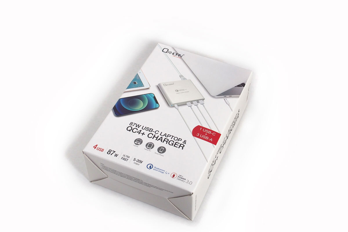 Oxhorn Multi-Functional USB Type C Laptop Notebook Charger with 87W Power Delivery - Quick Charge, HP, ASUS, Lenovo, Dell, Acer, Toshiba (Now includes 1m cable) *Clearance*