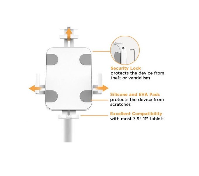 Brateck Universal Anti-Theft tablet floor stand compatible with most 7.9'-11' Tablets-White
