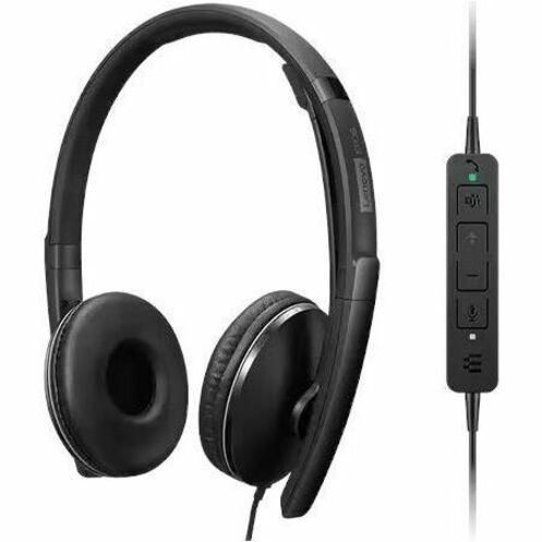 Lenovo Wired On-ear, Over-the-head Stereo Headset - Black - Microsoft Teams Certification - Binaural - Ear-cup - 2.2 Kilo Ohm - 20 Hz to 20 kHz - 178.5 cm Cable - Noise Cancelling Microphone - USB Type C