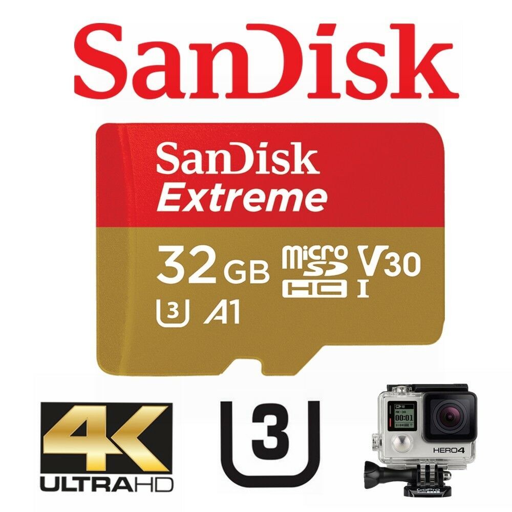 SanDisk Extreme 32GB Micro SD Card SDHC UHS-I Action Camera GoPro Memory Card 4K U3 A1 100Mb/s