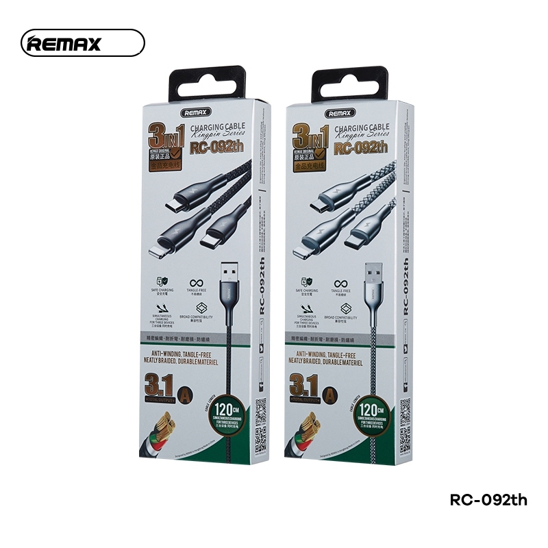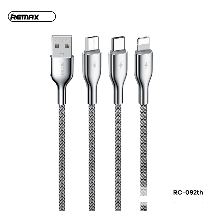 3 in 1 Multi USB Fast Charging Cable Remax Type-C iPhone Micro-USB 3.1A Silver