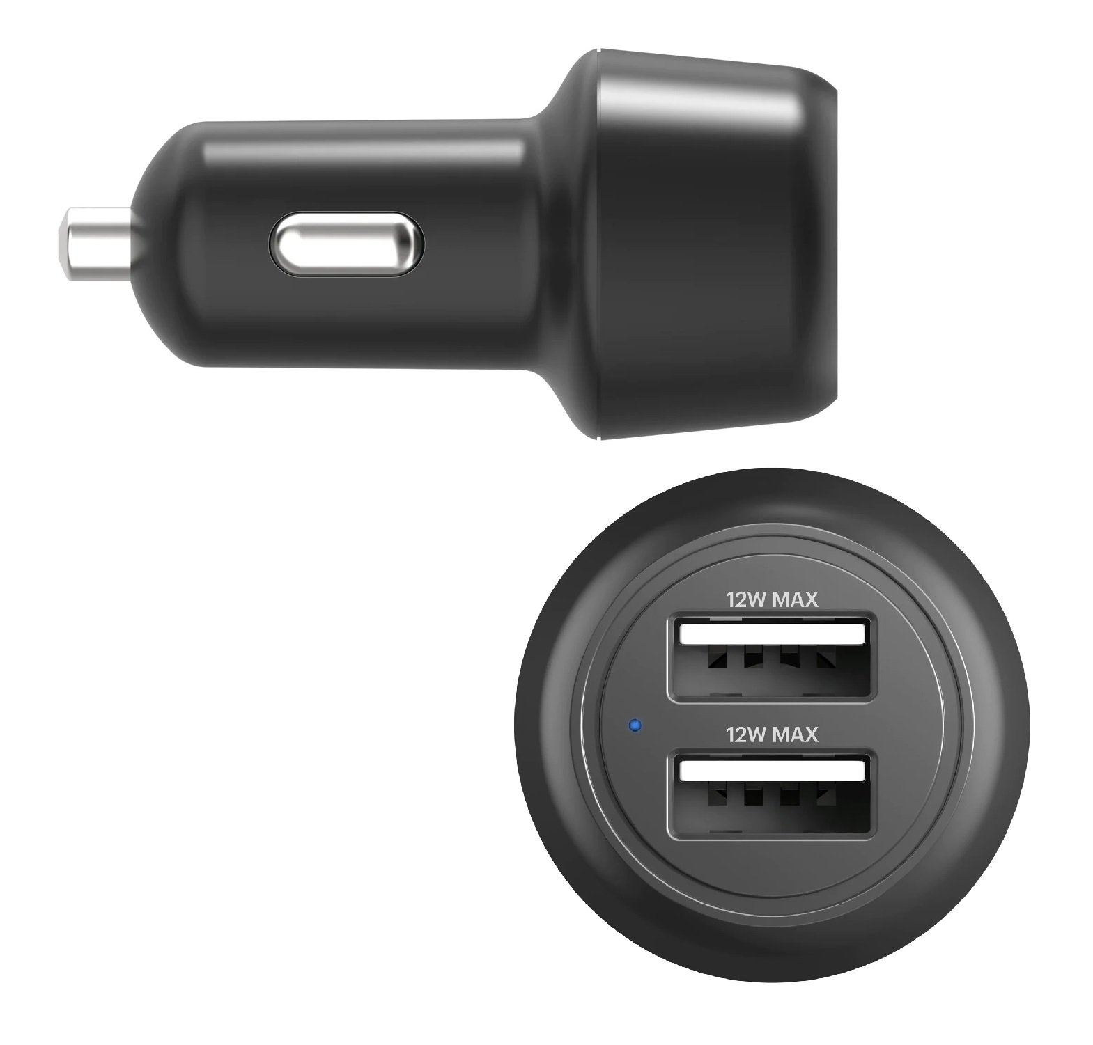 Cygnett CARPOWER 12W Dual Port Car Charger - Black (CY3697CYCCH), Dual charging (2x USB-A car charger), Compact design,12W charging