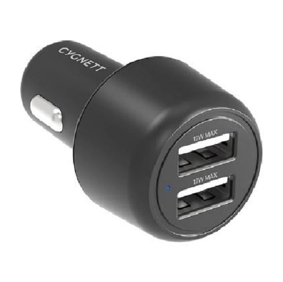 Cygnett CarPower 24W Dual Port (2x USB-A 12W) Car Charger - Black (CY3697CYCCH)