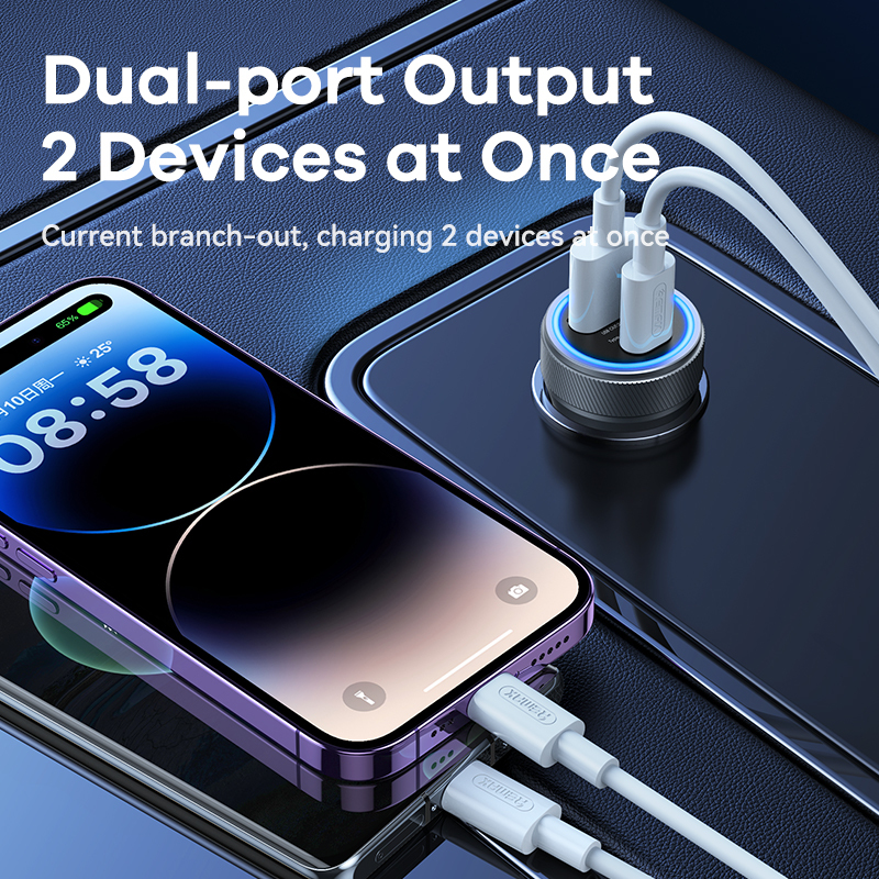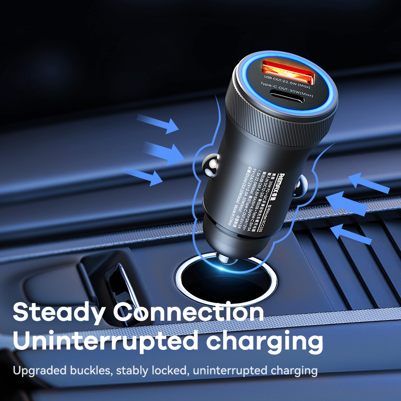 Remax Car Charger Seaya Series 2 Port USB 30W PD+QC Fast Charging With Blue Led