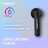 • Playtime @ 50% Volume - Approx: Up to 6 + 18 hours