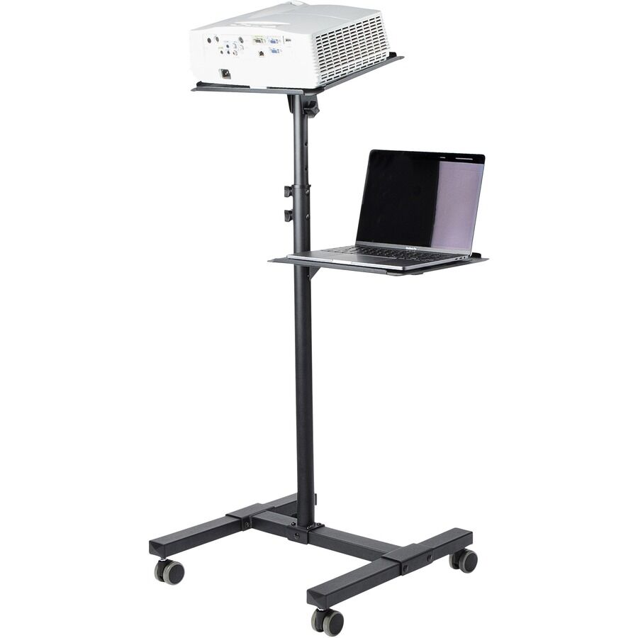 Mobile Projector and Laptop Stand/Cart - Heavy Duty Portable Projector Stand (2 Shelves hold 22lb/10kg each) - Height Adjustable Rolling Presentation