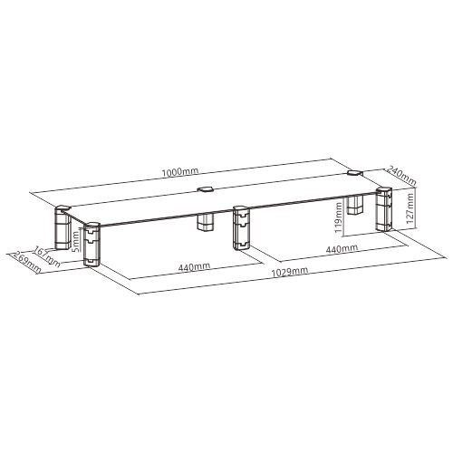 Brateck Dual Monitor Tempered Glass Modular Riser (1029x285x127mm) Fit Screen Size 13'~32' Weight Capacity Up to 20kg (LS)