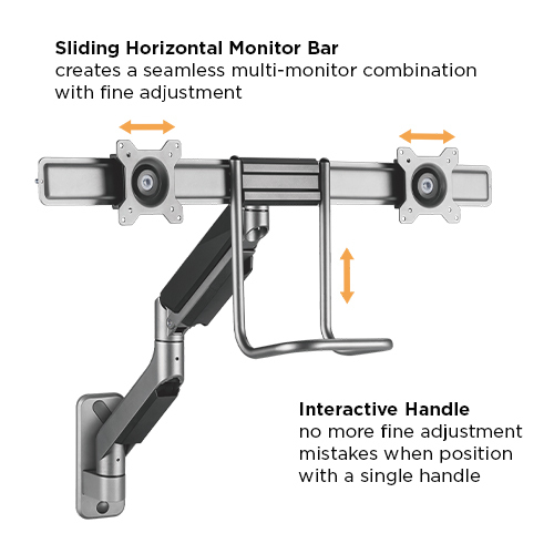●Sliding Horizontal Monitor Bar: for easy seamless monitor placement