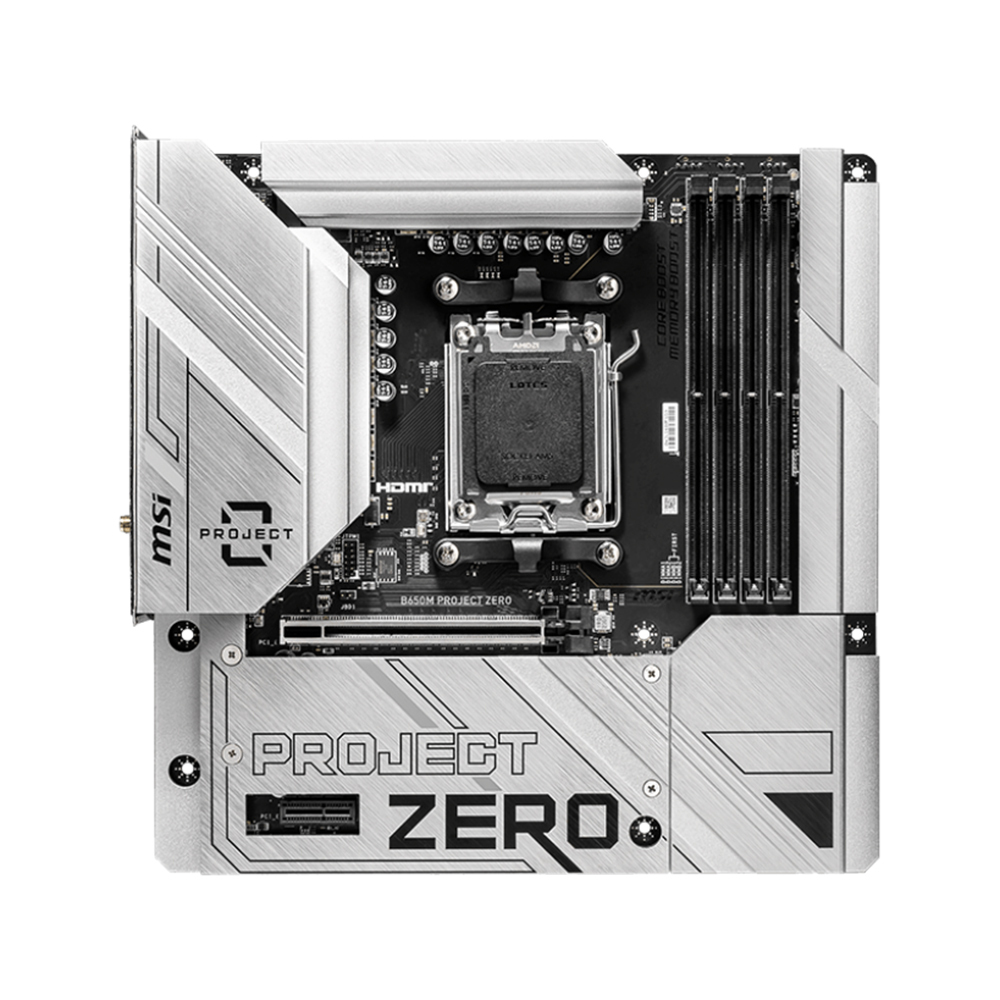 MSI B650M PROJECT ZERO Motherboard, AMD B650, 4x DDR5 128GB, 1x HDMI, 2x M.2, USB 3.2 Type A x9