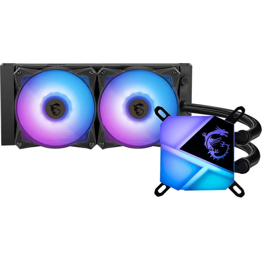 MSI MAG CORELIQUID C240 Cooling Fan/Radiator/Water Block/Pump - Processor - 120 mm Maximum Fan Diameter - 2 x Fan(s) - 2229.4 L/min Maximum Airflow - 2000 rpm - Liquid Cooler Cooler - Dual Ball Bearing - 4-Pin - Compatible Intel Socket: H3 LGA-1150, H4 LGA-1151, H2 LGA-1155, H LGA-1156, LGA-1200, B LGA-1366, LGA 2011-v3, R LGA-2011, R4 LGA-2066, LGA-1700 - Compatible AMD Socket: AM4, FM2+, FM2, FM1, AM3 PGA-941, AM3+, AM2 PGA-940, AM2+ PGA-940 - ARGB LED - 8.0 Year Life