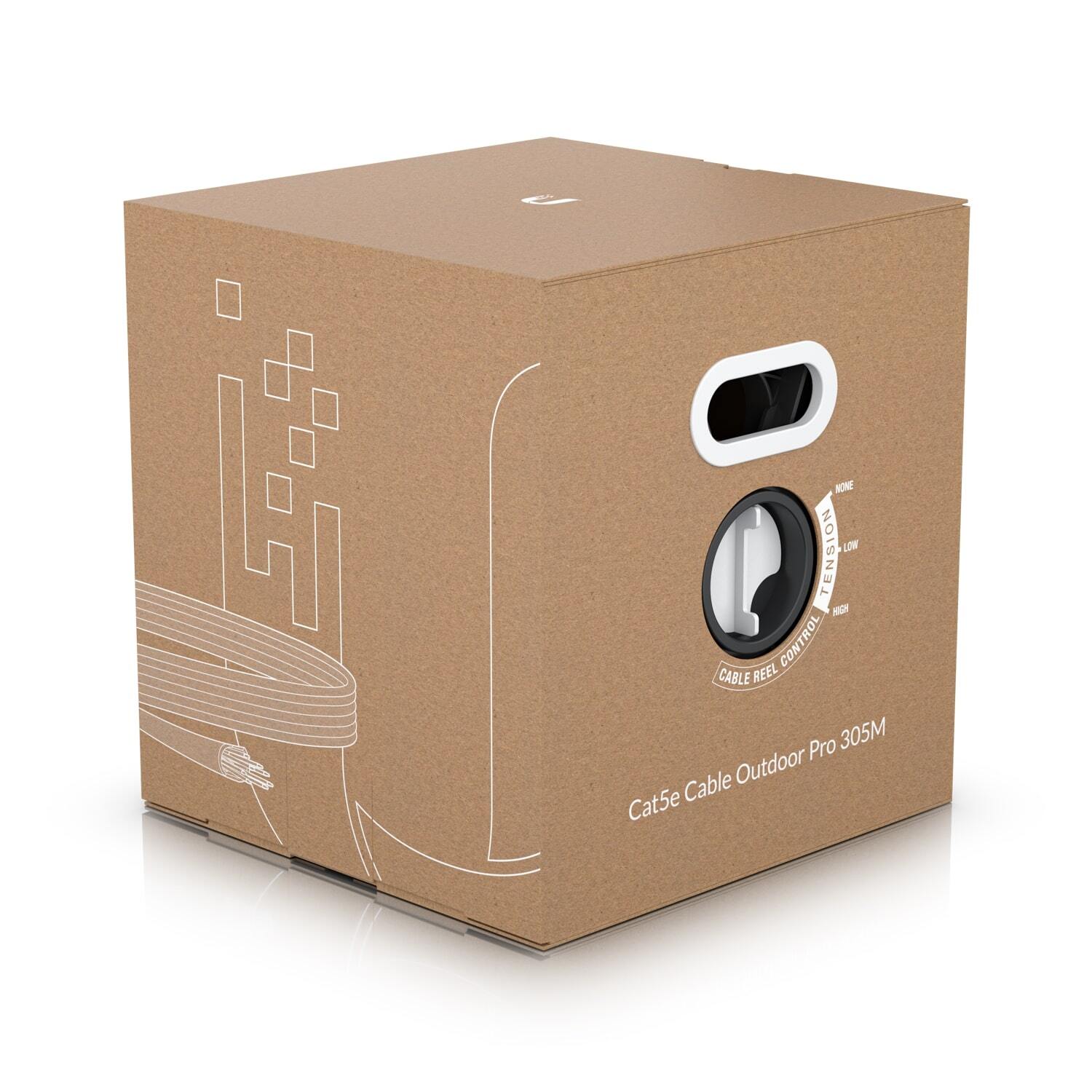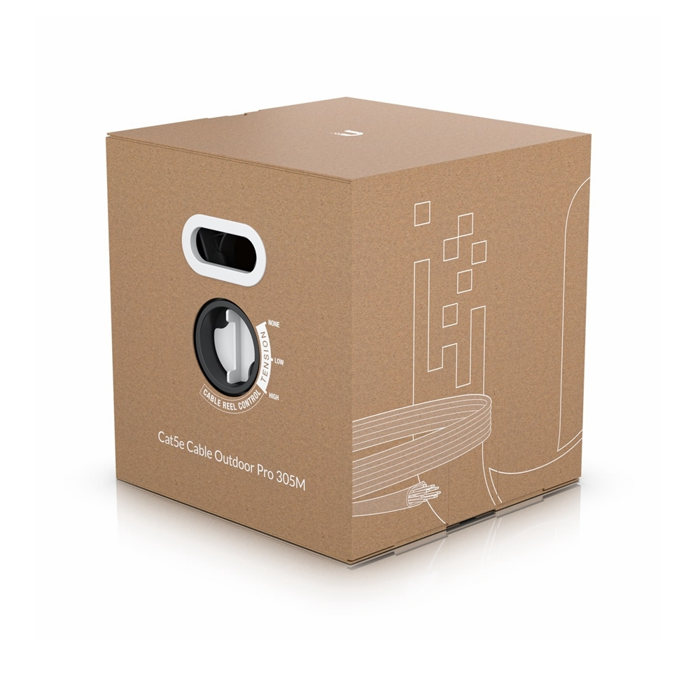 The UniFi Outdoor Cable is an all-weather Category 5e cable designed to protect Gigabit Ethernet links from harsh weather damage and electromagnetic interference with its highly insulating, white, weatherproof jacket and built-in ESD drain wire. This 1,000-foot (305 m) cable also features 24 AWG solid copper conductor pairings and internal foil shielding to optimize connection stability and performance.