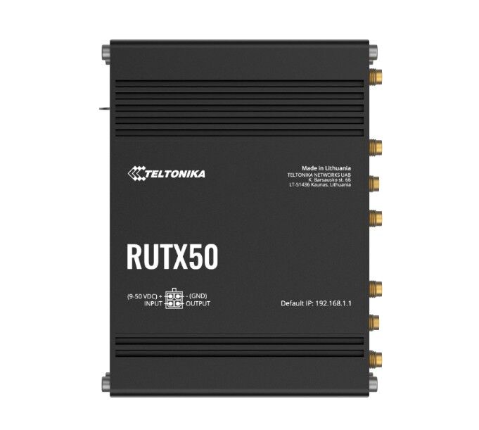 Teltonika RUTX50 Industrial 5G Router, 5G dual SIM cellular, 5 Gigabit Ethernet ports, dual-band WI-Fi, PSU included