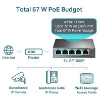 TP-Link TL-SF1005P 5-Port 10/100Mbps Desktop Switch with 4-Port PoE 67W IEEE 802.3af compliant 1Gbps Switching