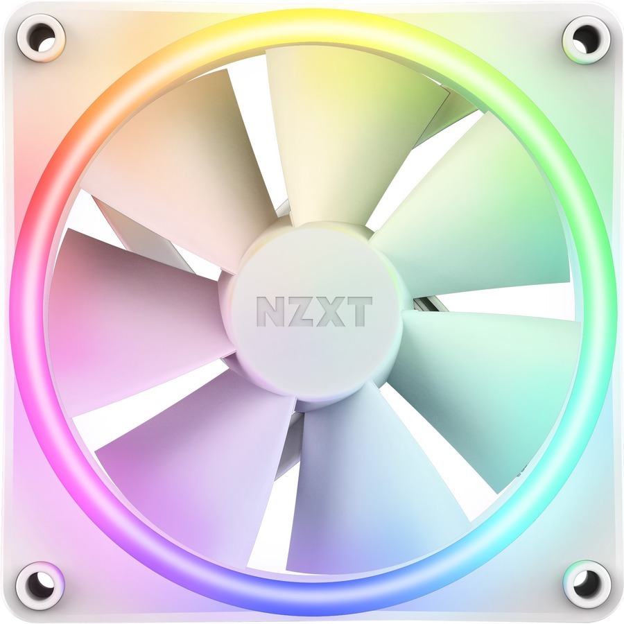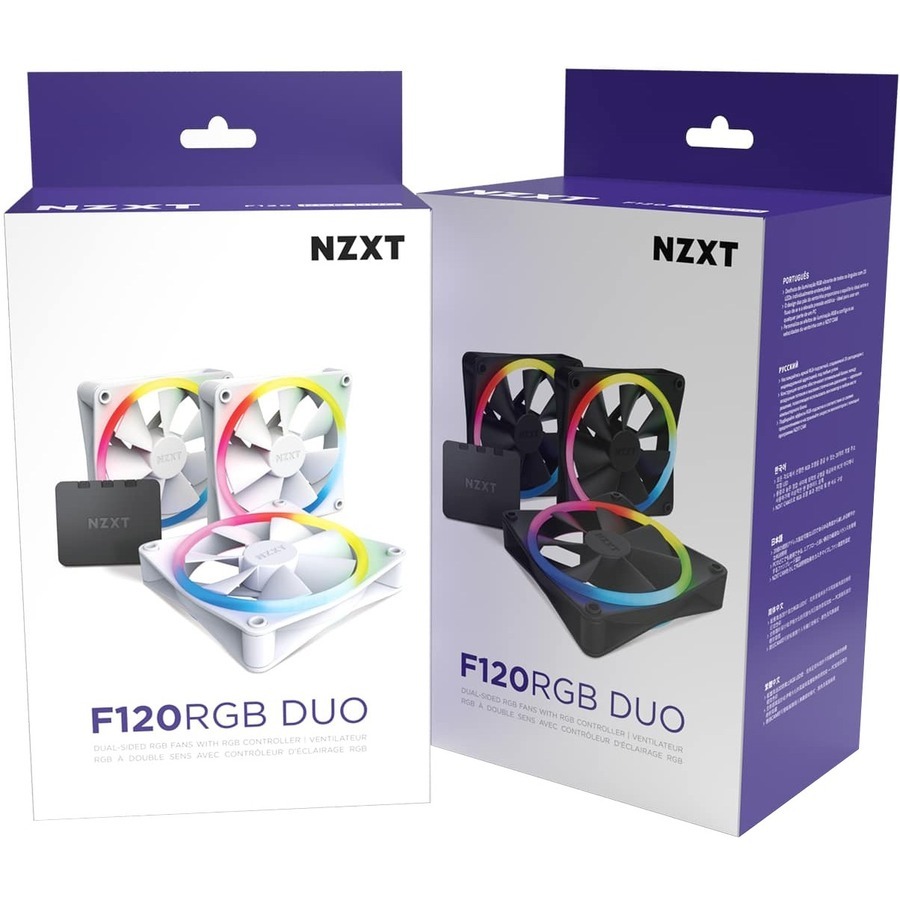 NZXT F120 RGB DUO 3 pc(s) Cooling Fan - 120 mm Maximum Fan Diameter - 3 x Fan(s) - 1375.6 L/min Maximum Airflow - 1800 rpm - Fluid Dynamic Bearing - 4-pin PWM - RGB LED - White - Retail - 6.8 Year Life