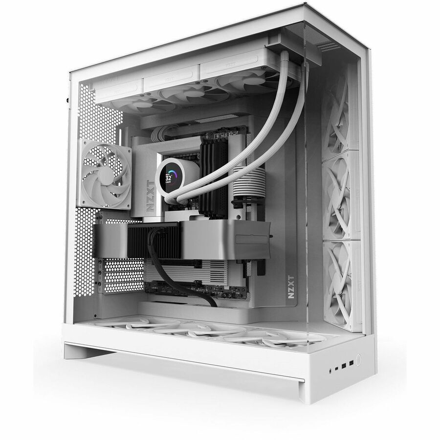 NZXT H9 Flow CM-H92FW-01 Computer Case - ATX Motherboard Supported - Mid-tower - Glass, Tempered Glass, Steel, Galvanized Cold Rolled Steel (SGCC) - White - 8 x Bay(s) - 3 × 140mm, 1 x 120mm Fan(s) Installed - 10 x Fan(s) Supported - 2 x Internal 3.5" Bay(s) - 6 x Internal 2.5" Bay(s) - 7 x Slot(s) - 3 x USB(s) - 2 x USB 3.2 Type-A, 1 x USB 3.2 Gen 2x2 Type C - 1 x Audio In - 1 x Audio Out - Fan Cooler