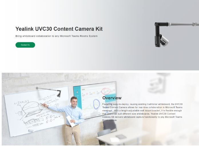 The CCMK wall bracket and arm supports the UVC30 4K Room camera to bring whiteboard collaboration to any Microsoft Teams Rooms (Yealink MVC systems). Featuring an easy to deploy whiteboard solution to your Microsoft Room System (Windows edition), reuse existing traditional whiteboards. The Content Camera allows for a real-time collaboration in Microsoft Teams meetings. With adjustable length wall mount bracket, it is flexiable enough that users can adjust to suit different size whiteboards.