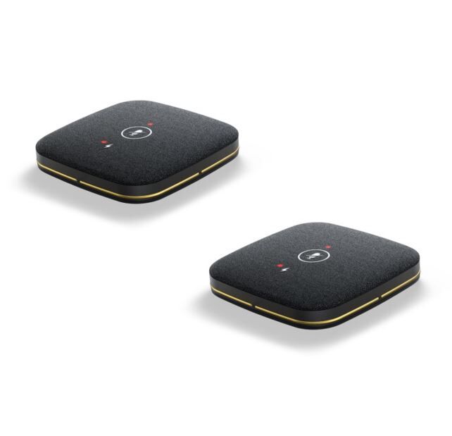 Yealink CPW65 is a pair of CP Wireless DECT Expansion Mic for the Yealink CP965 conference phone, solving the bottleneck of sound pickup in large meeting rooms. It comes with a black fabric cover and has water-resistant, grease-resistant, and antifouling properties. With CPW65, delivering crystal-clear and optimally stable audio experiences in large conference rooms is a piece of cake. It has three built-in microphones and supports a 360-degree voice pickup range with a radius of 10-feet (3 meters). CP965's voice pickup range can be expanded easily by wirelessly connecting two CPW65. The 11-day standby time and 13-hour talk time of CPW65 will save time for the IT manager. It is also convenient to charge by simply placing it on the charging cradle without orienting it in any particular direction. CPW65' s benefits make it ideal for organizations who want optimal microphone placement and wider room coverage, as it enables your CP965 to be utilized in more conferencing scenarios.