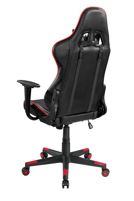 Brateck PU Leather Gaming Chairs with Headrest and Lumbar Support (70x70x127~137cm) Up to 150kg - PU Leather,PVC Leather-Black Red (LS)